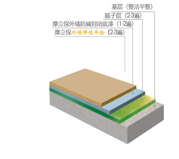 摩立保彈性平涂產(chǎn)品采用高延展性彈性乳液,搭配各種顏填料、助劑調(diào)制而成,漆膜具有極強(qiáng)的拉伸性能,可用于掩蓋墻體的細(xì)小裂紋。產(chǎn)品在高低溫環(huán)境下均具有極強(qiáng)的延展性可拉伸強(qiáng)度,使用環(huán)境廣泛,尤其適用于溫差較大的氣候環(huán)境。